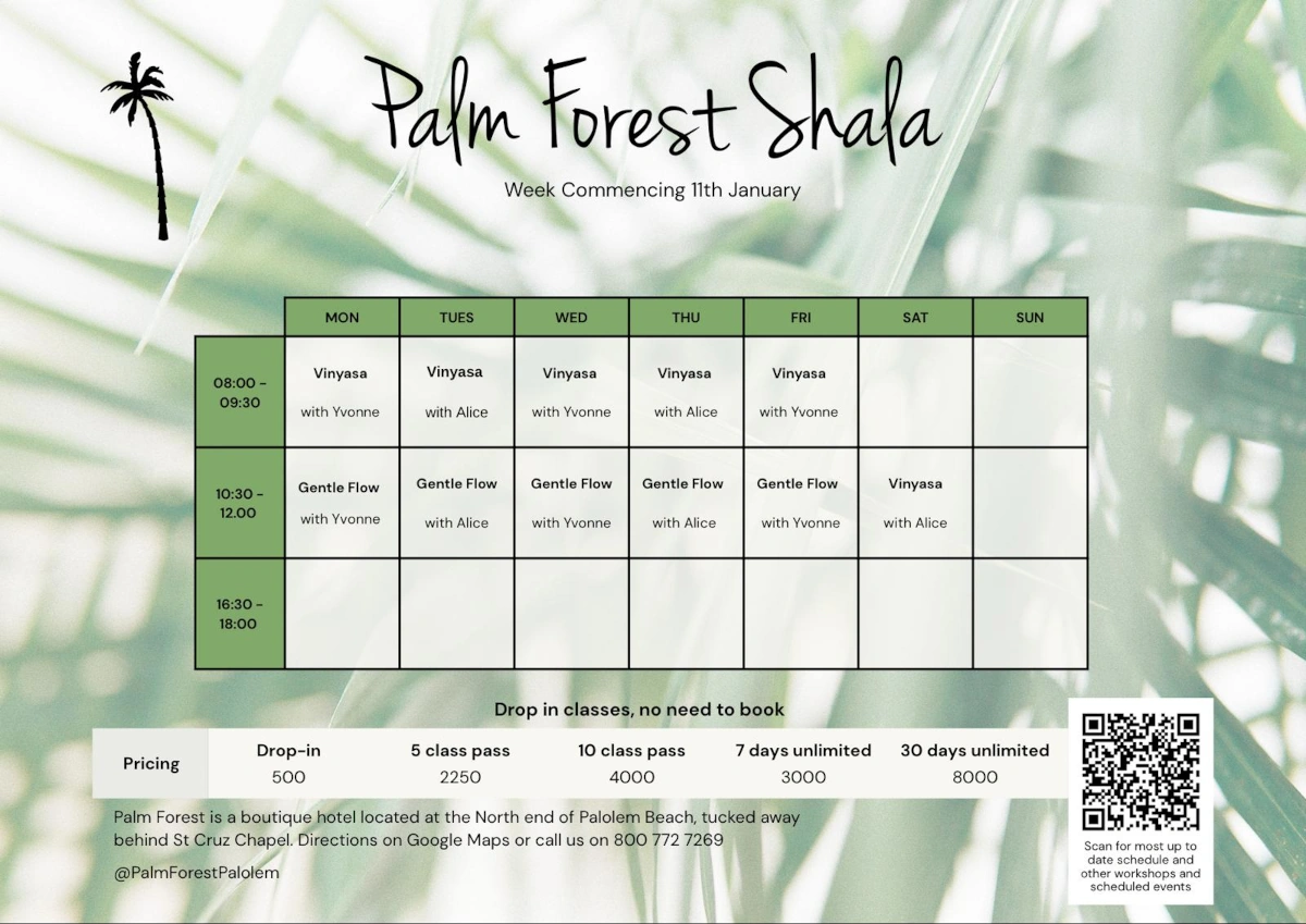 Please arrive a few minutes early to the Shala to pay, set up your mat and settle in.